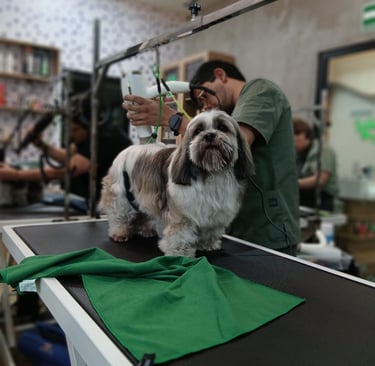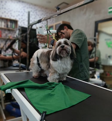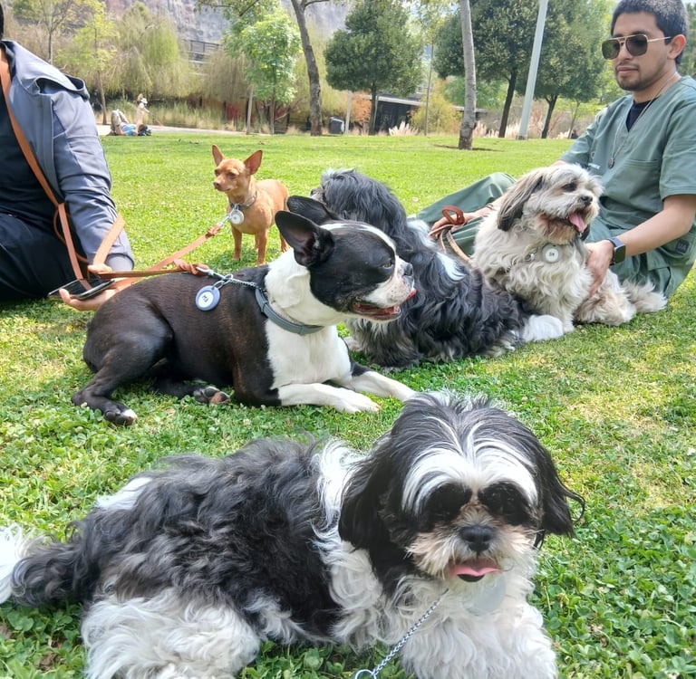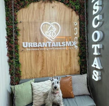 Fotos de tus mascotas disfrutando en UrbantailsMX, desde baños hasta juegos en el parque.