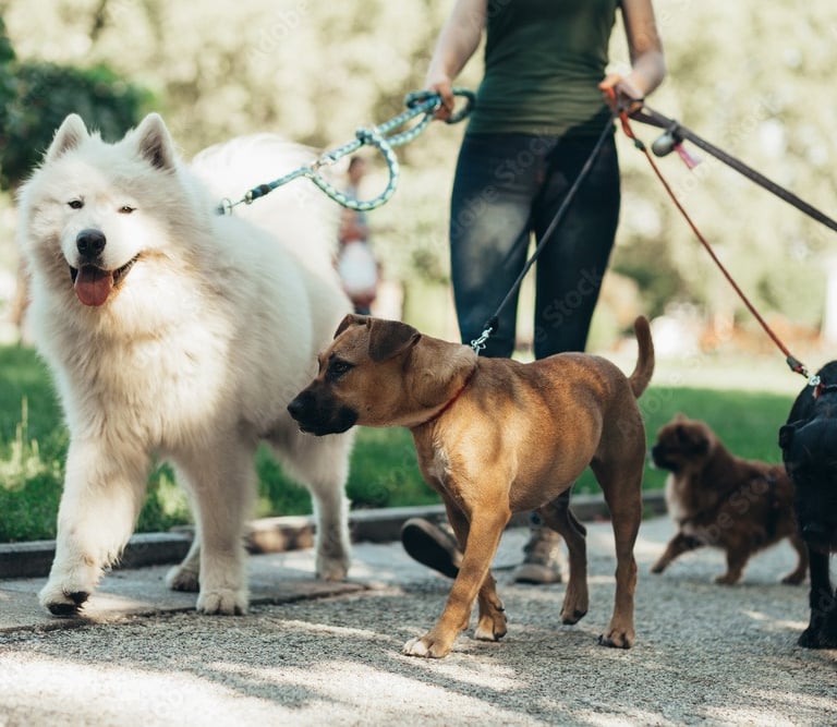 Fotos de tus mascotas disfrutando en UrbantailsMX, desde baños hasta juegos en el parque.